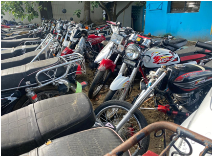 Las motocicletas y automóviles están bajo el control del Ministerio Público para los fines legales correspondientes.