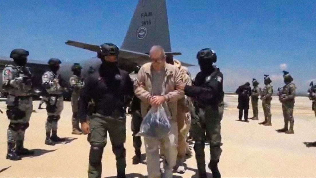 En las imágenes se muestra el amplio despliegue de seguridad. Los prisioneros van esposados y atados unos a otros por la cintura mientras los guían por las instalaciones del aeropuerto del Escuadrón Aéreo 501 de la Fuerza Aérea Mexicana.