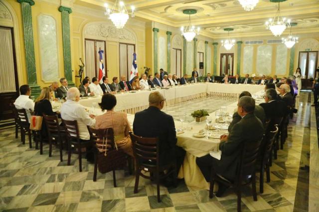 Abinader expuso sus pareceres sobre distintos temas nacionales en una conversación abierta con más de 40 periodistas y comunicadores en un almuerzo que se extendió por dos horas y media en el Salón Verde del Palacio Nacional.